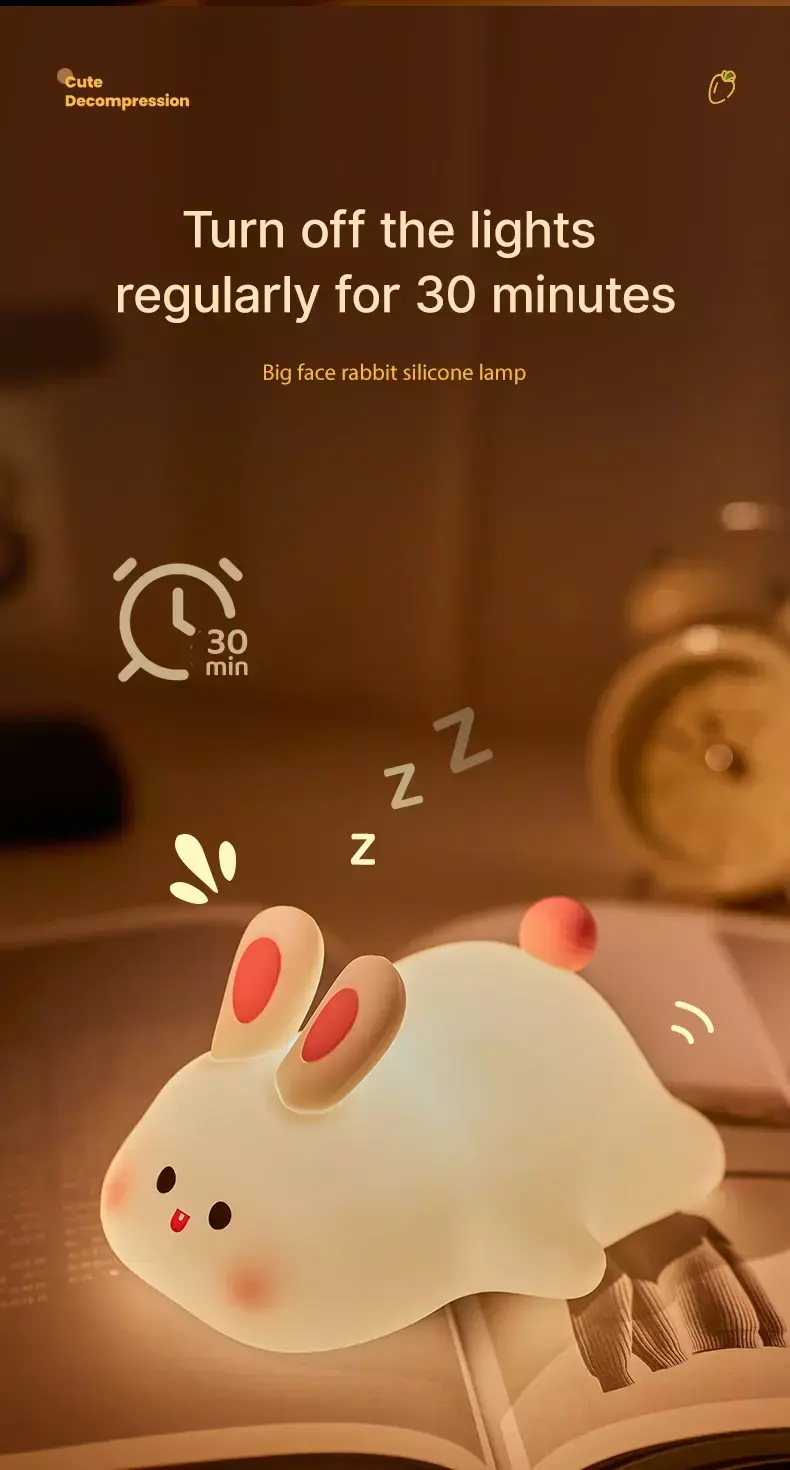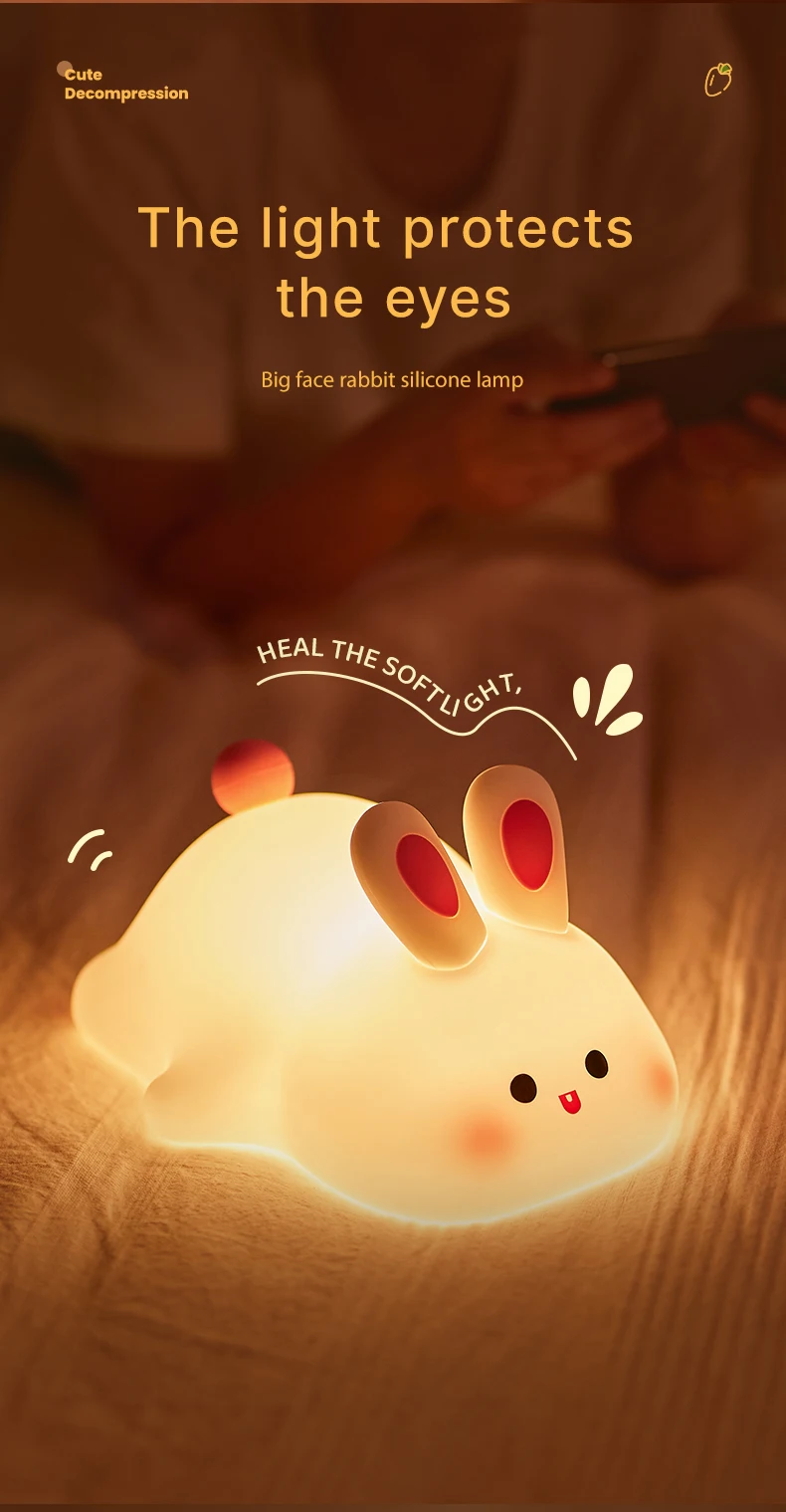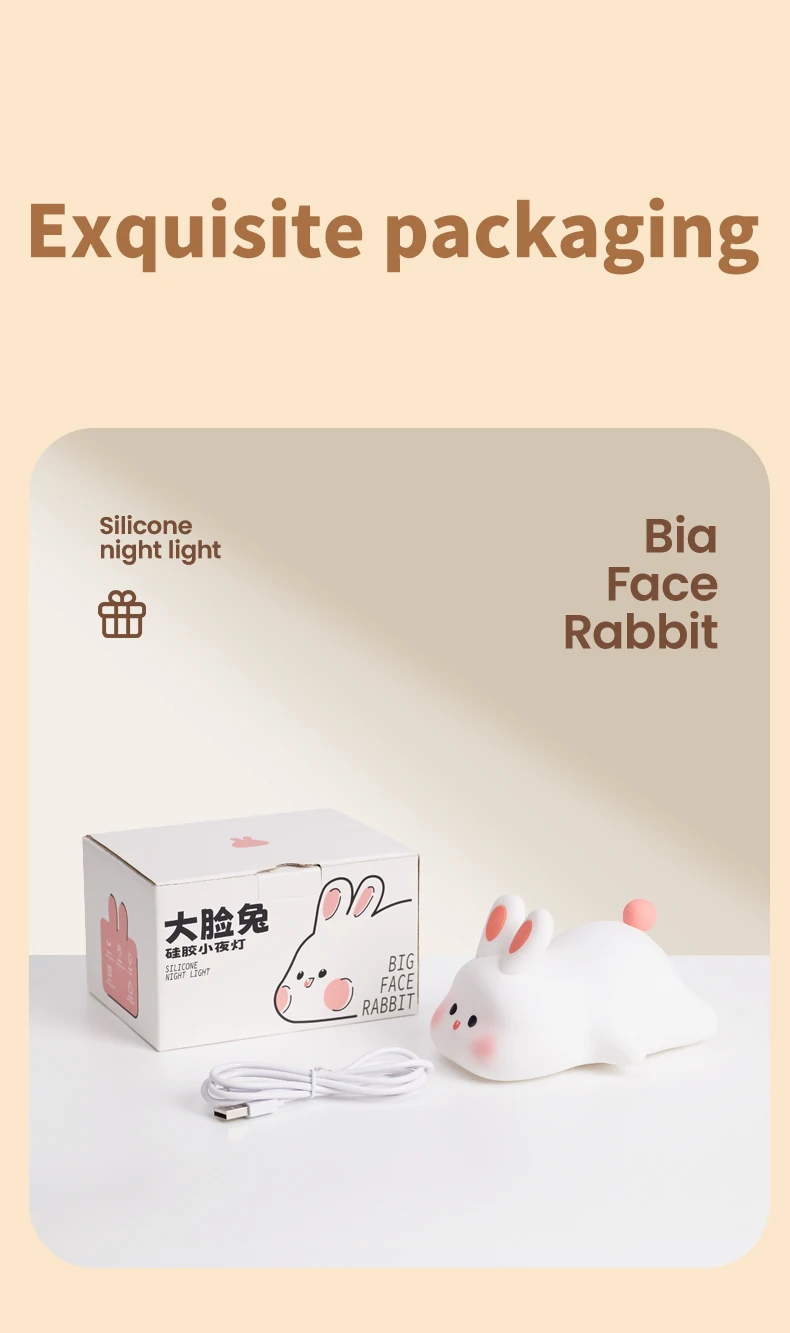 Big Face Rabbit Night Light Cute Silicone Rabbit Cartoon Soft Lamp Touch Night Light Children Sleep Light Room Decoration Gift