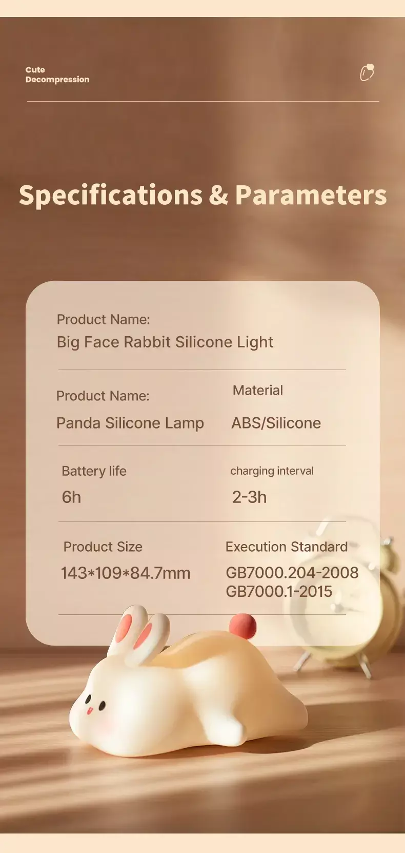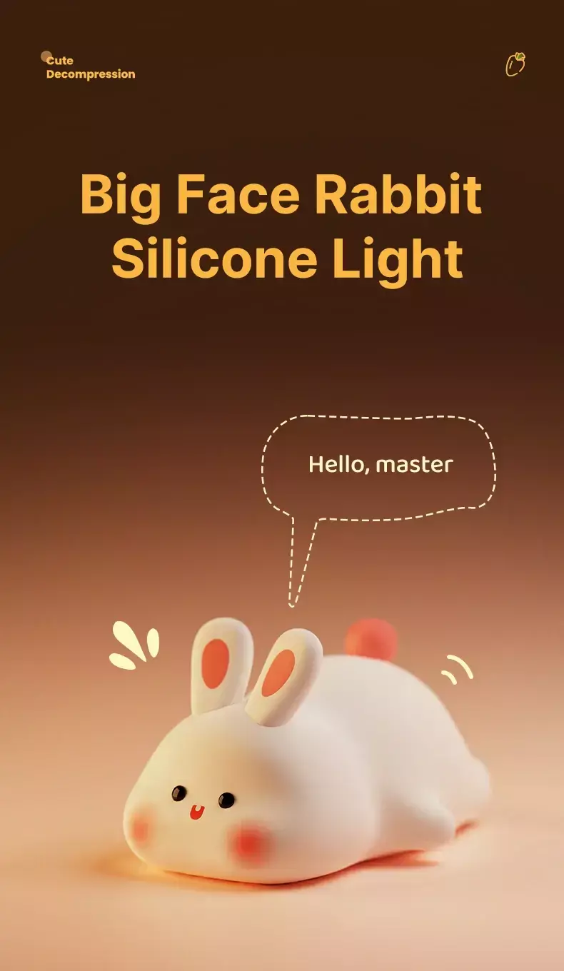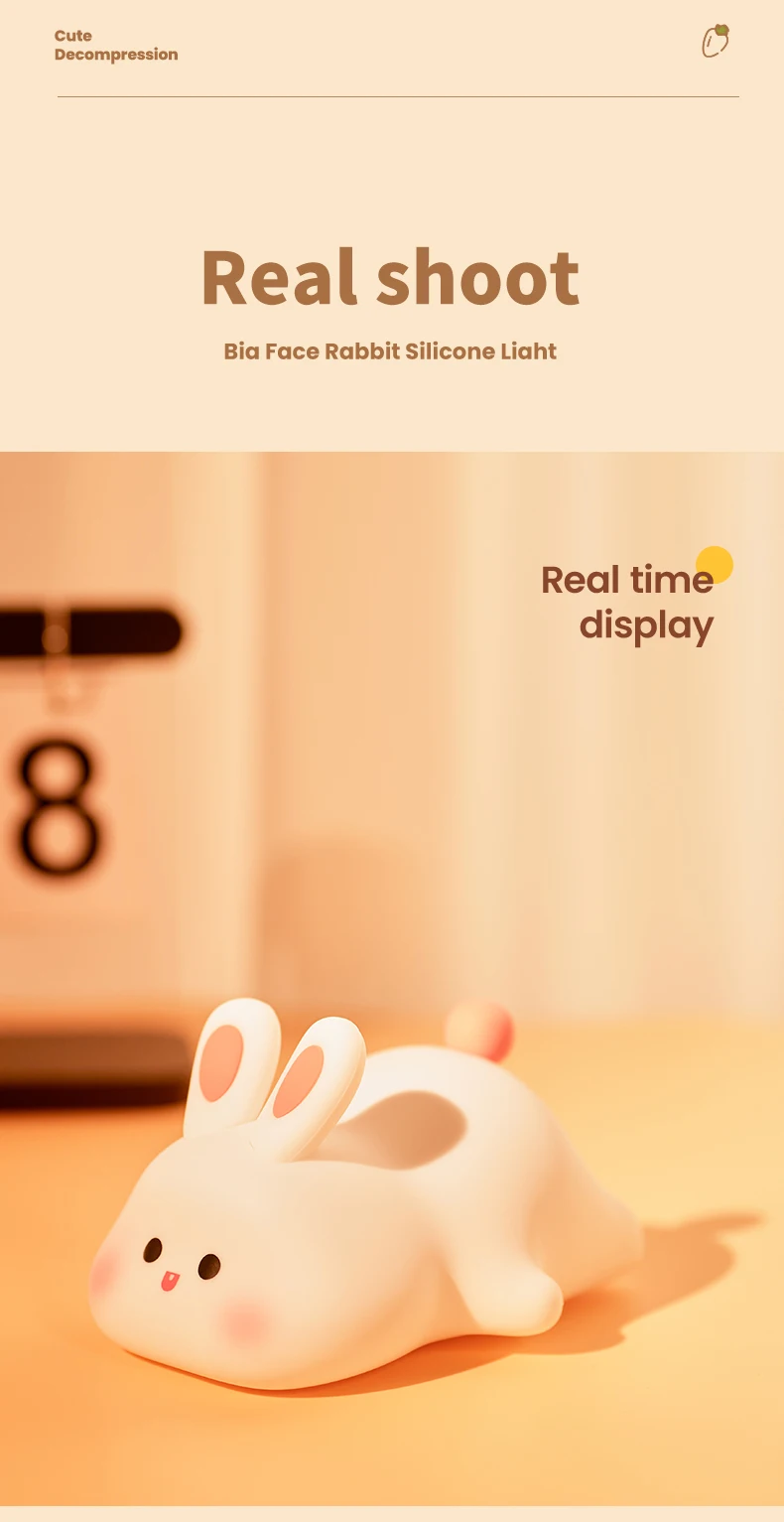 Big Face Rabbit Night Light Cute Silicone Rabbit Cartoon Soft Lamp Touch Night Light Children Sleep Light Room Decoration Gift